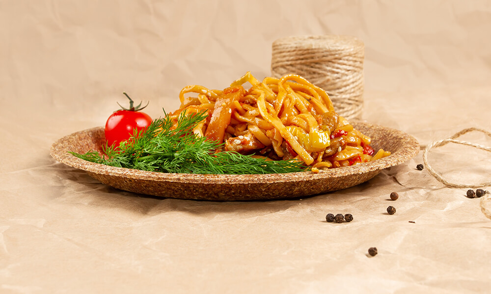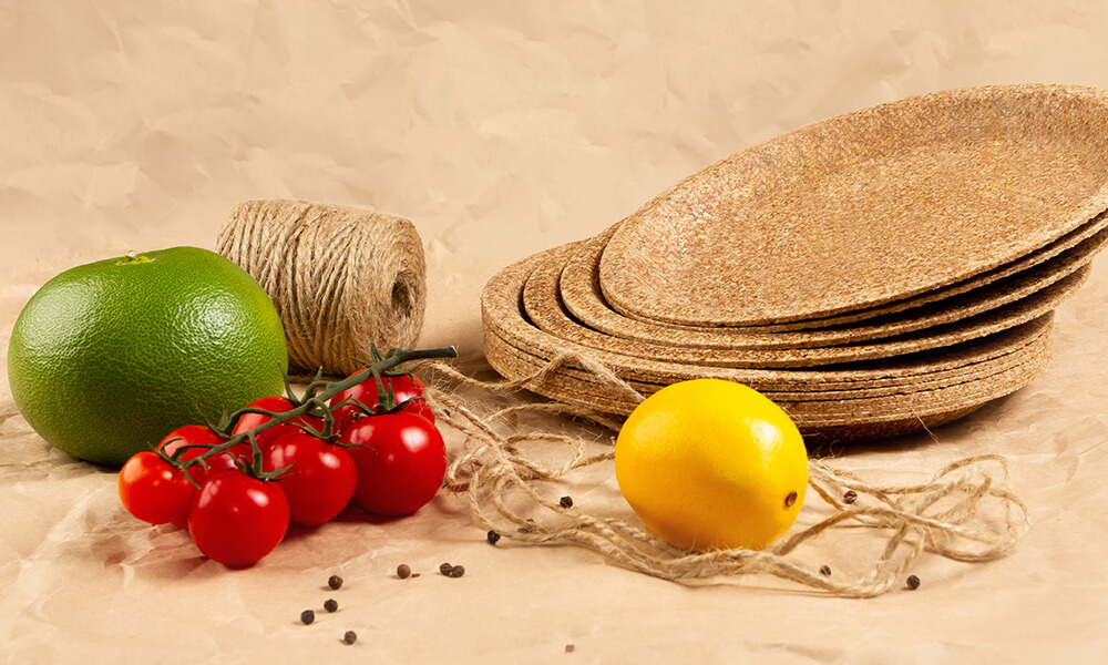 Biologisch abbaubares Geschirr wird heutzutage aus den ungewöhnlichsten Rohstoffen pflanzlichen Ursprungs hergestellt wie: